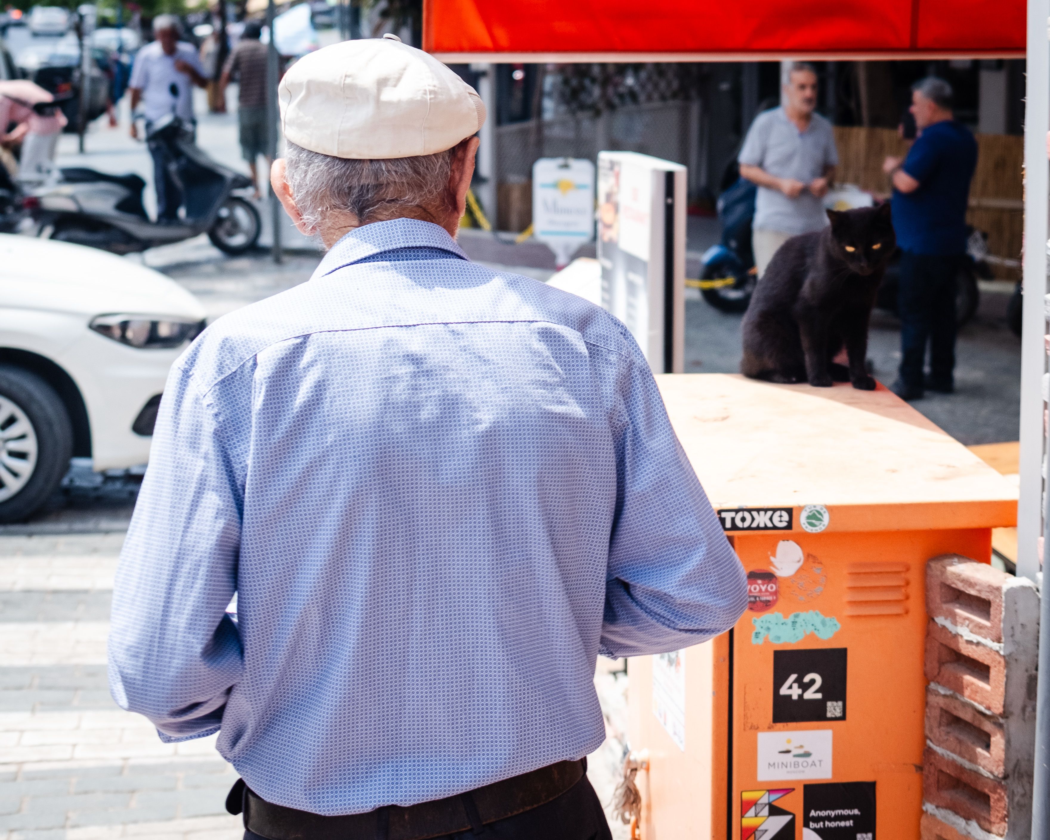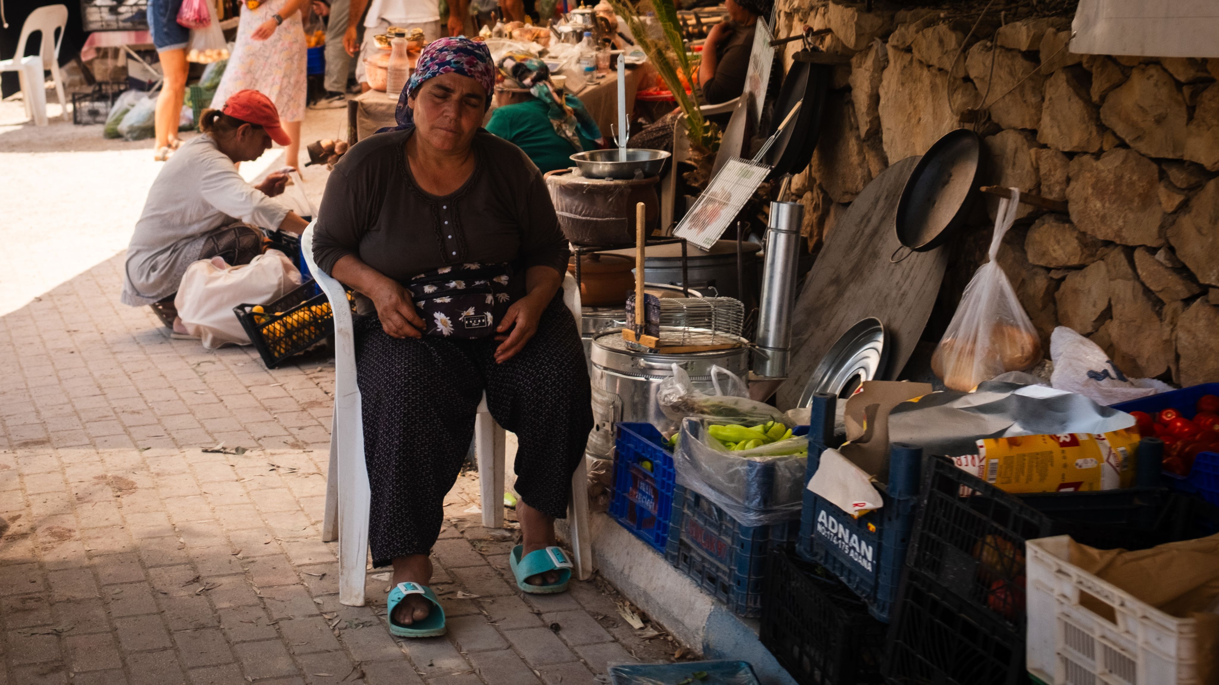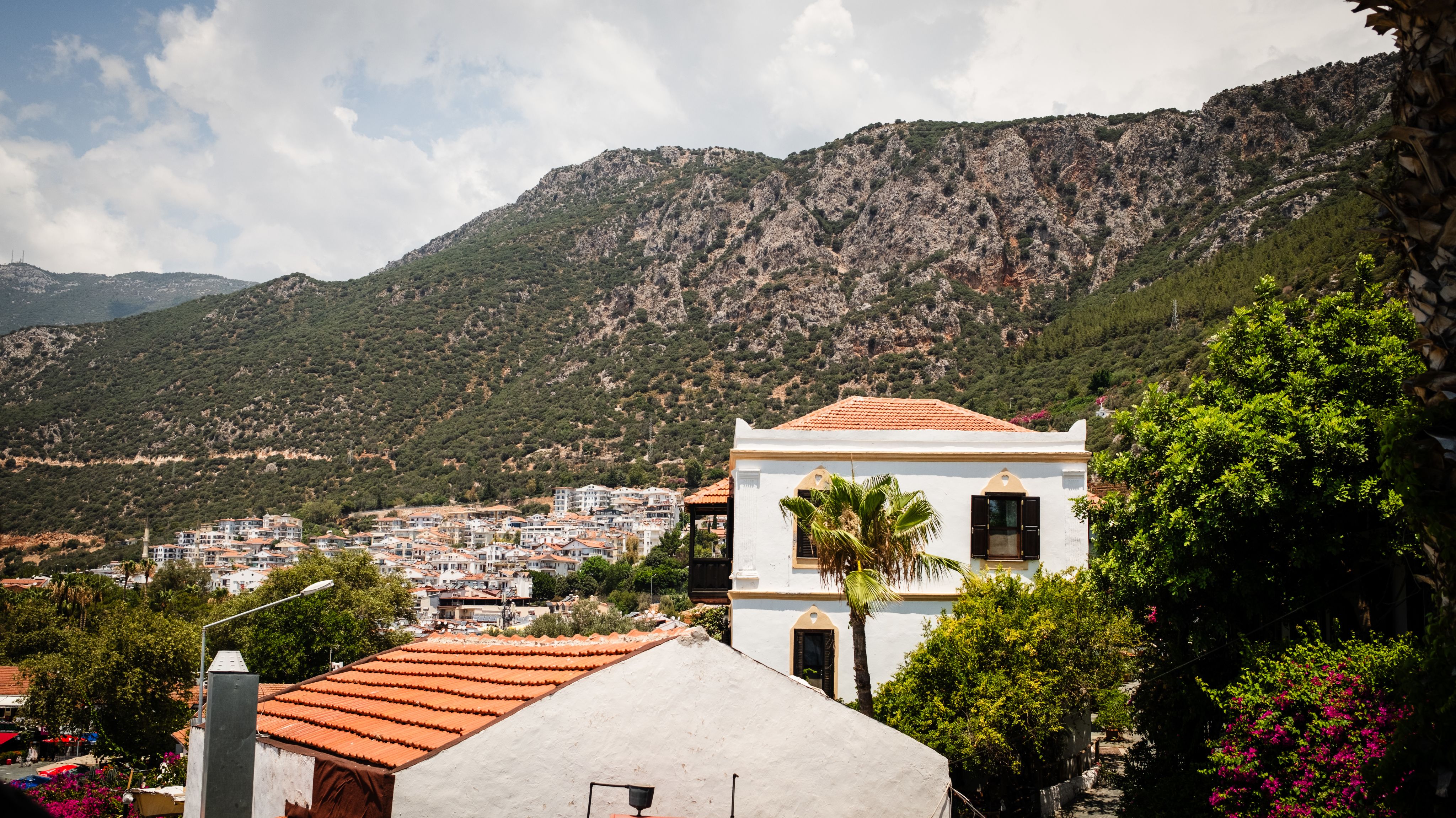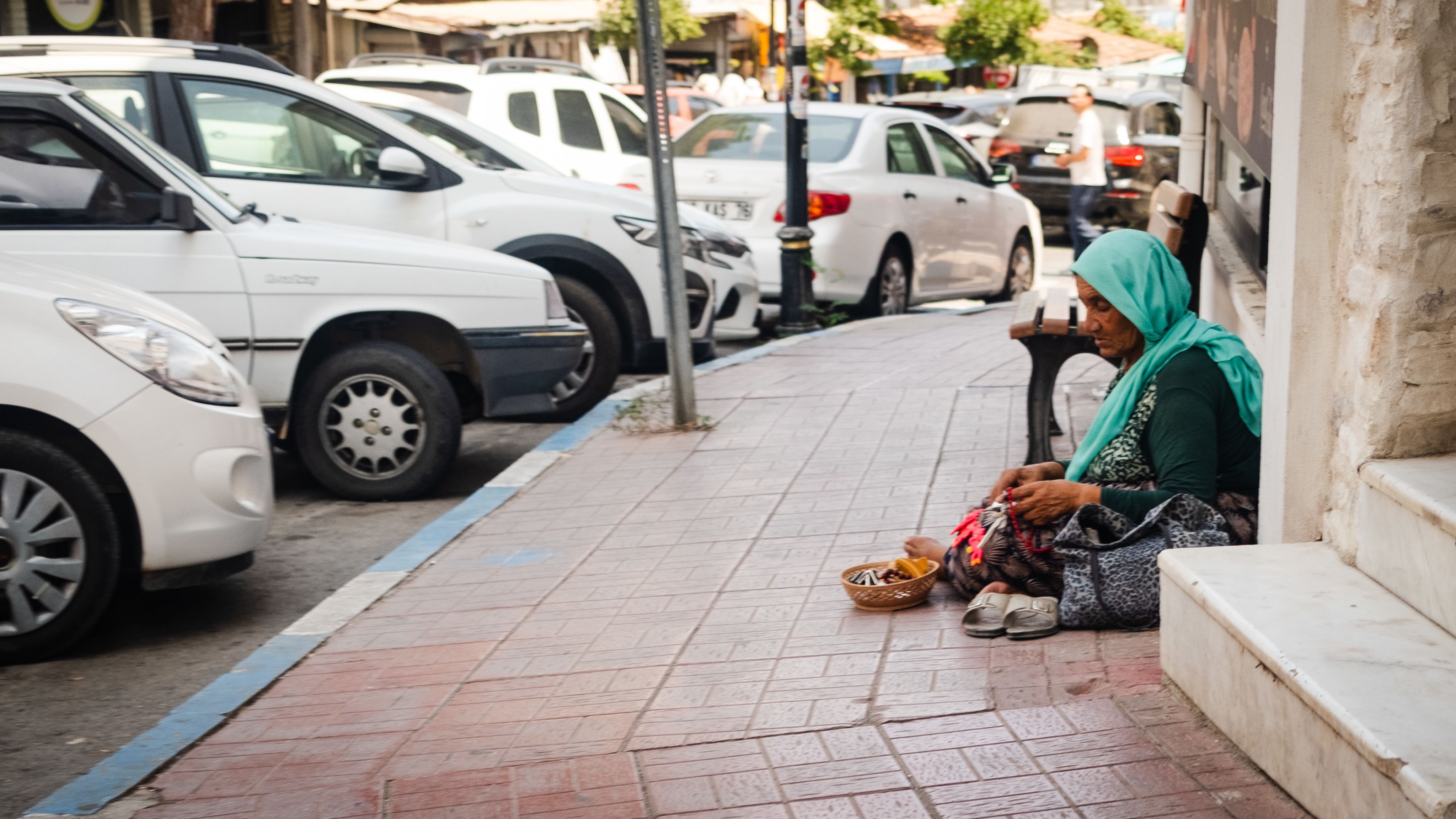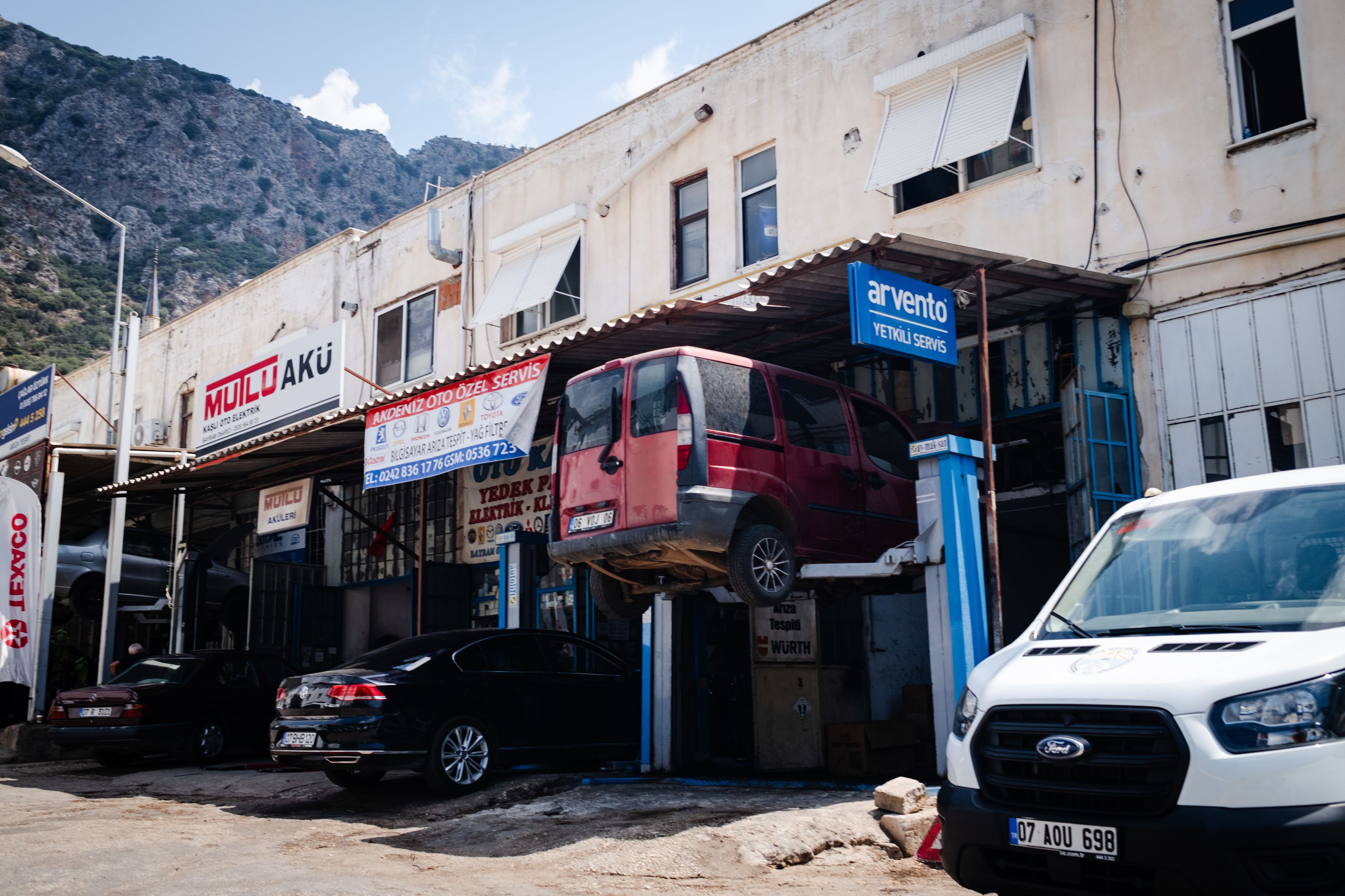 To my surprise, the streets of Kas reminded me a lot of Bali, with their cracked, uneven roads and puffing car engines struggling to climb the hills. The air was filled with the sounds of honking horns and revving scooters. Along the way, we passed old automotive shops with rusting cars and buildings that looked like they might collapse at any moment. In the distance, green mountains stood looming over the busy city. People sat on curbs, smoking or selling small trinkets to passersby's.