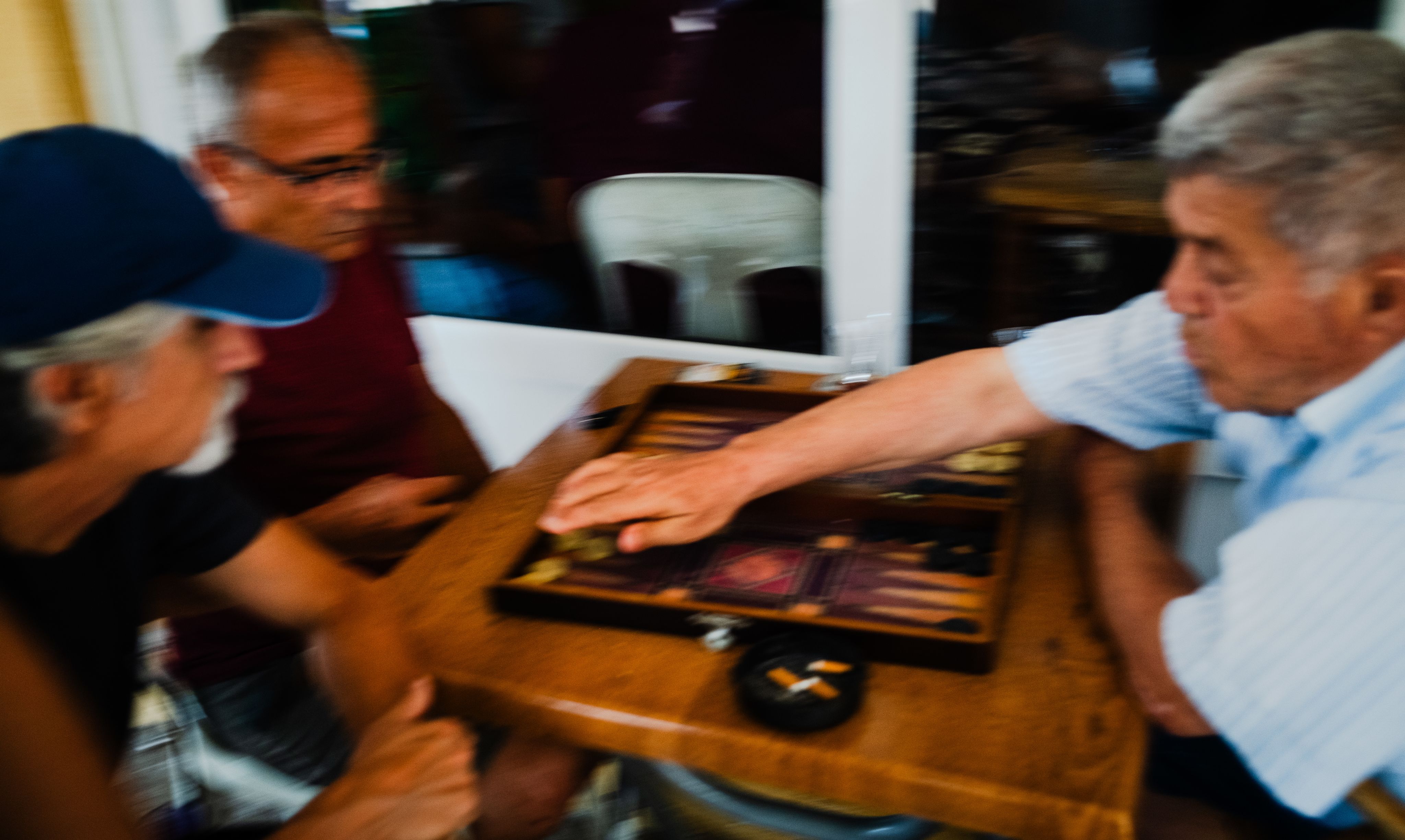 Walking, along the street we passed by groups of men, gathering around small tables, focused on board games, speaking rapidly in Turkish between puffs of cigarette smoke. Their laughter echoeing down the streets.