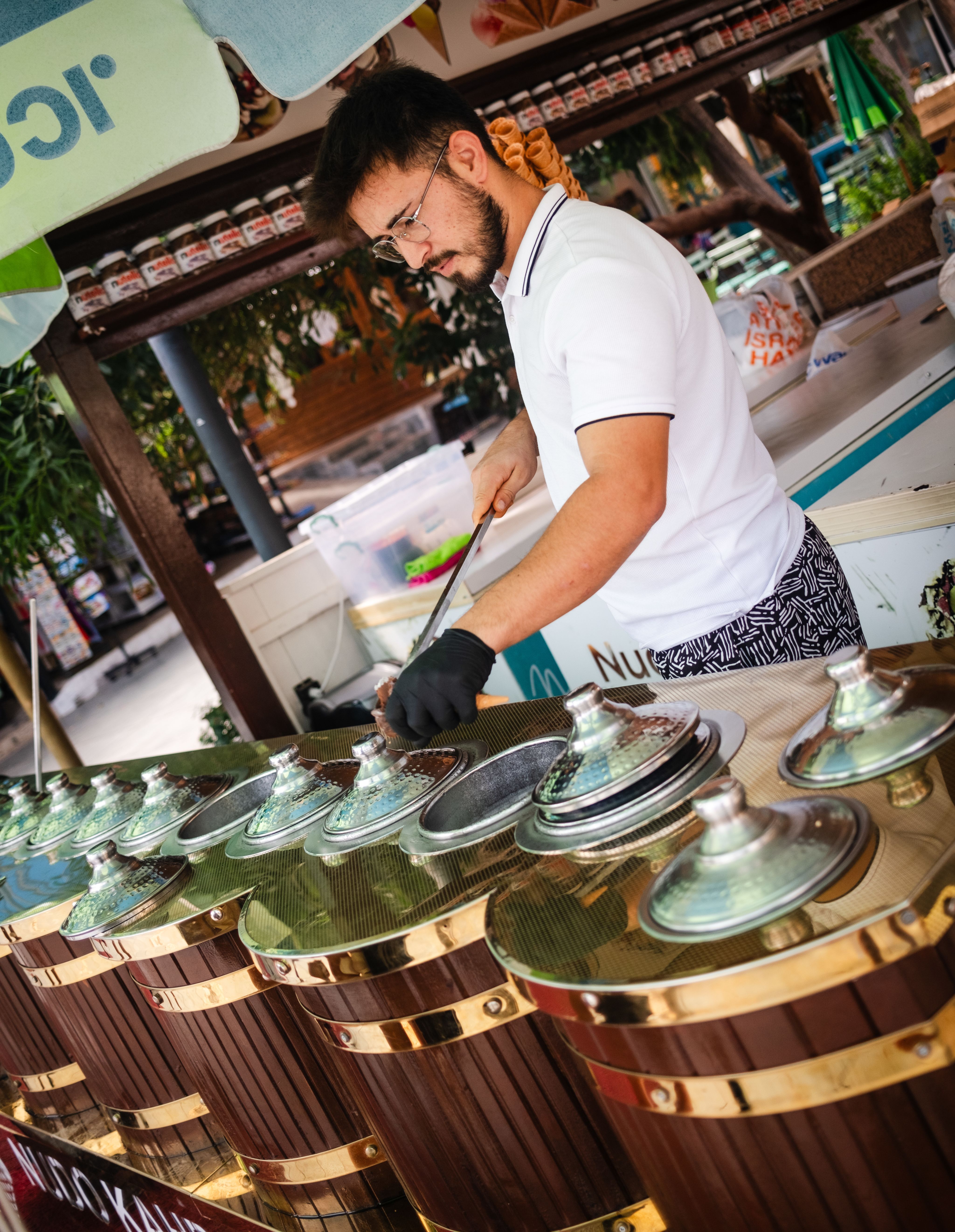 Pressed for time, we made a final stop for ice cream. My partner had been telling me for ages about a Turkish ice cream trick, where they serve it on a metal stick and playfully flip it around. I hadn’t understood his story, but I was astonished to see it in action.
